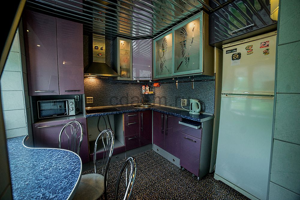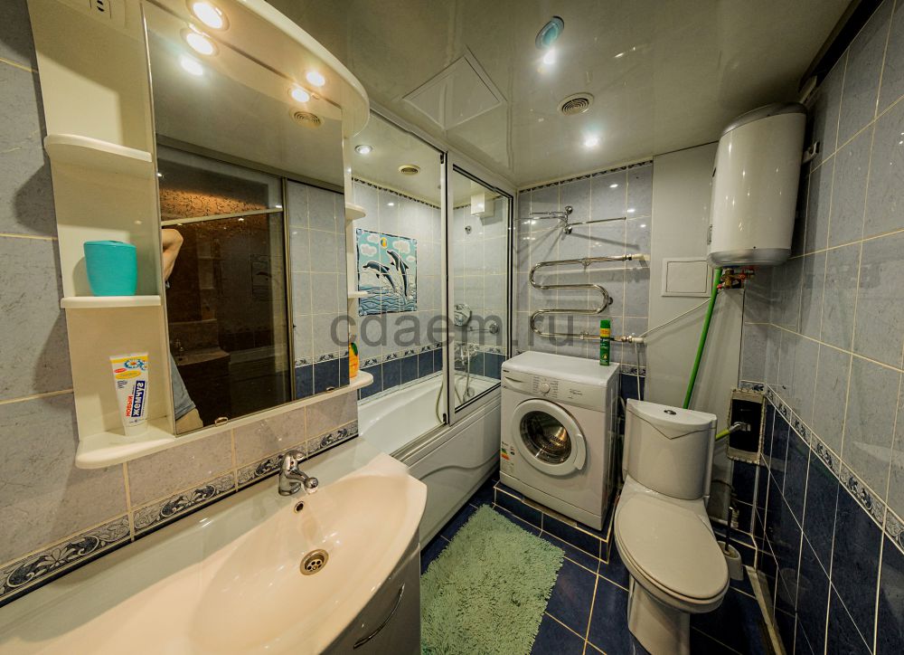В квартире есть водонагреватель, шумоизоляция. Имеется холодильник, микроволновая печь, электрический чайник, стиральная машина - автомат, утюг, два телевизора, компьютер.